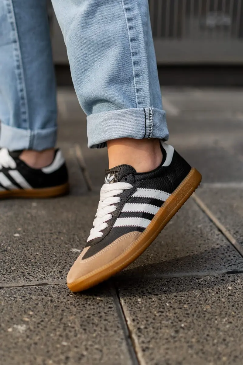 La Samba en su forma más icónica. Con un diseño que combina la audacia de lo clásico con la versatilidad moderna, estas zapatillas presentan un contraste atemporal de las tres franjas blancas. La puntera de gamuza, del mismo tono oscuro, añade una capa de textura y durabilidad, manteniendo la silueta inconfundible que ha triunfado en canchas de fútbol sala y en las calles. La suela de goma color caramelo, distintiva y funcional, no solo proporciona un agarre excepcional, sino que también sella el look con una nota retro y sofisticada. Perfectas para un estilo que es a la vez atrevido y discreto, estas zapatillas son una declaración de intenciones: un clásico genuino para el presente.